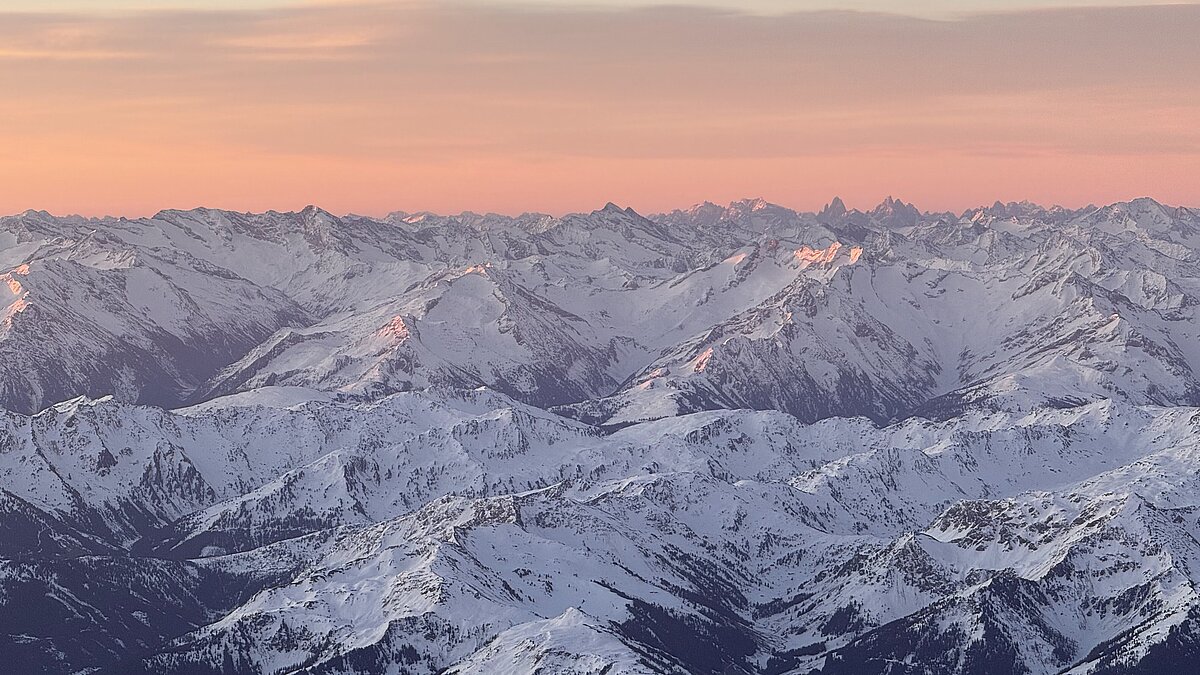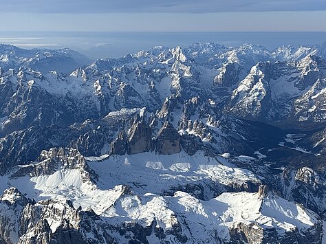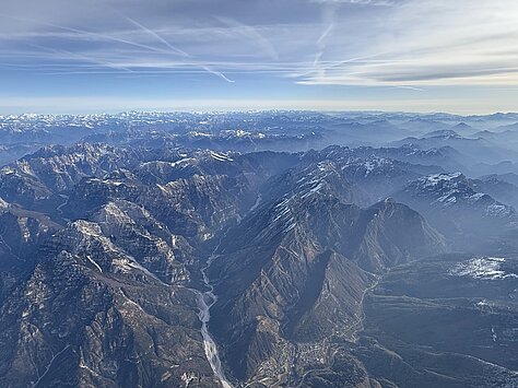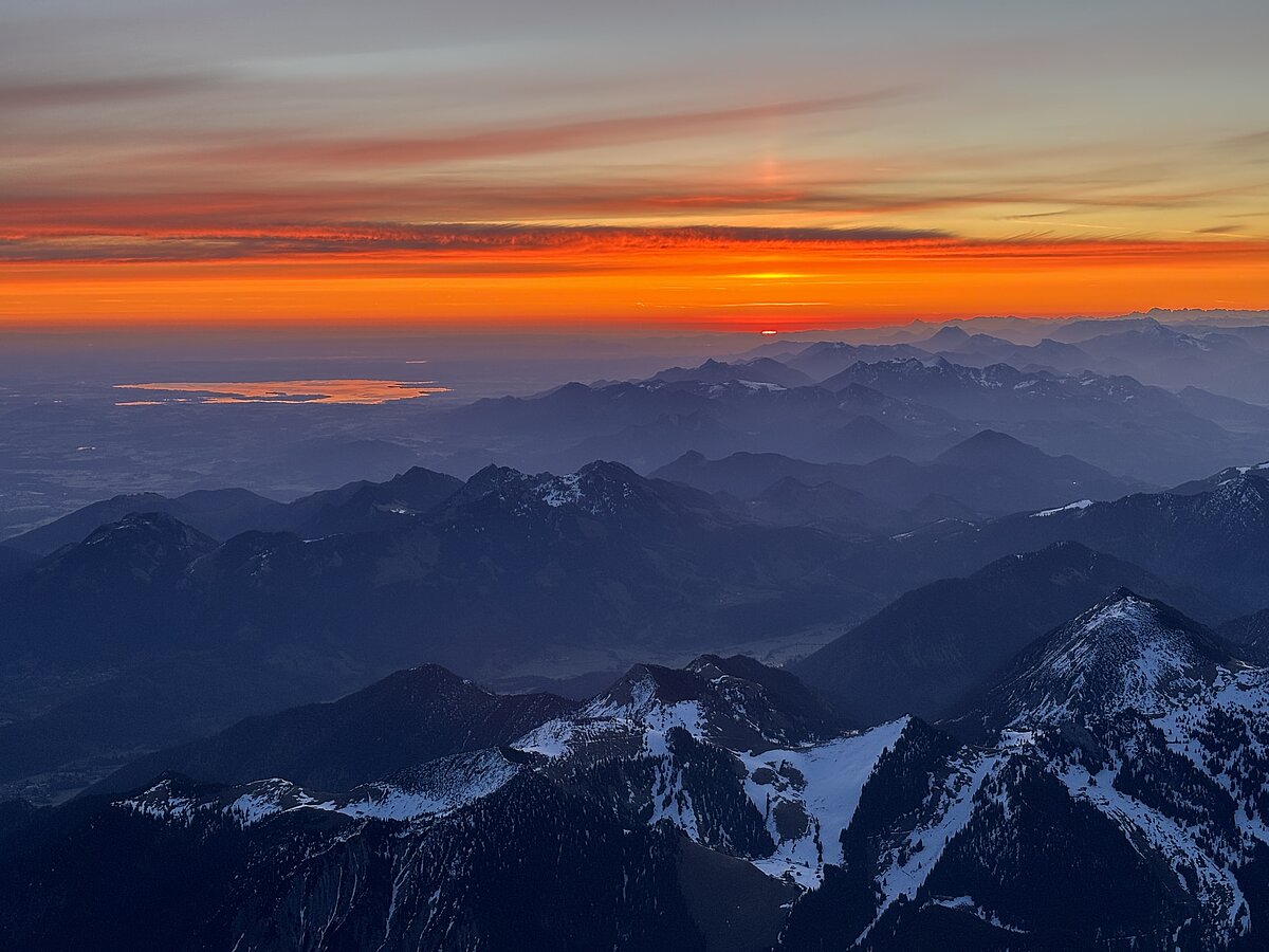 Die Fahrtzeit beträgt rund 3,5 bis 5 Stunden in der Luft. Währenddessen erleben Sie eine Fernsicht von bis zu 100 Kilometern – auf die Zugspitze, den Ortler, den Großglockner, die Dolomiten mit Marmolata, Langkofel und Drei Zinnen. Mit etwas Glück reicht der Blick bis zur Adria oder zu Seen wie dem Gardasee oder dem Idrosee.