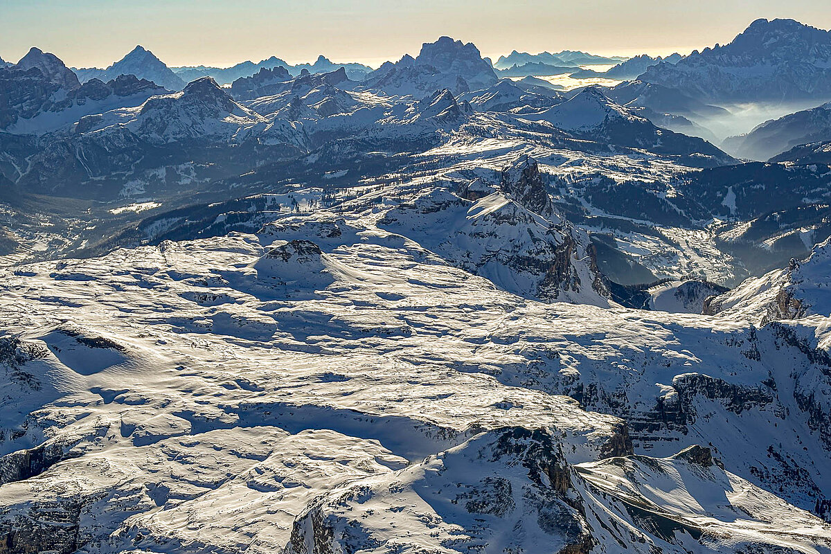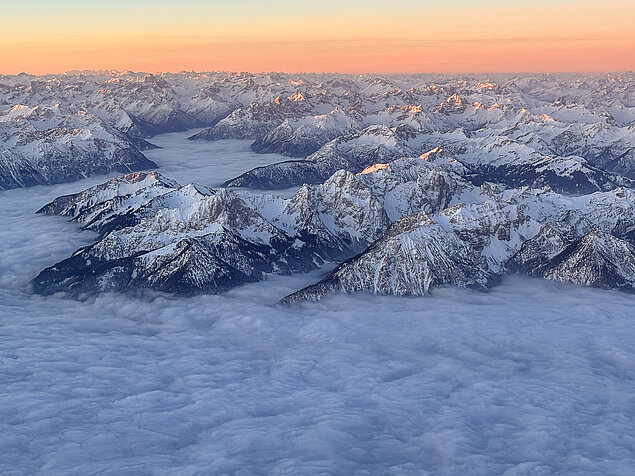 Die Fahrtzeit beträgt rund 3,5 bis 5 Stunden in der Luft. Währenddessen erleben Sie eine Fernsicht von bis zu 100 Kilometern – auf die Zugspitze, den Ortler, den Großglockner, die Dolomiten mit Marmolata, Langkofel und Drei Zinnen. Mit etwas Glück reicht der Blick bis zur Adria oder zu Seen wie dem Gardasee oder dem Idrosee.